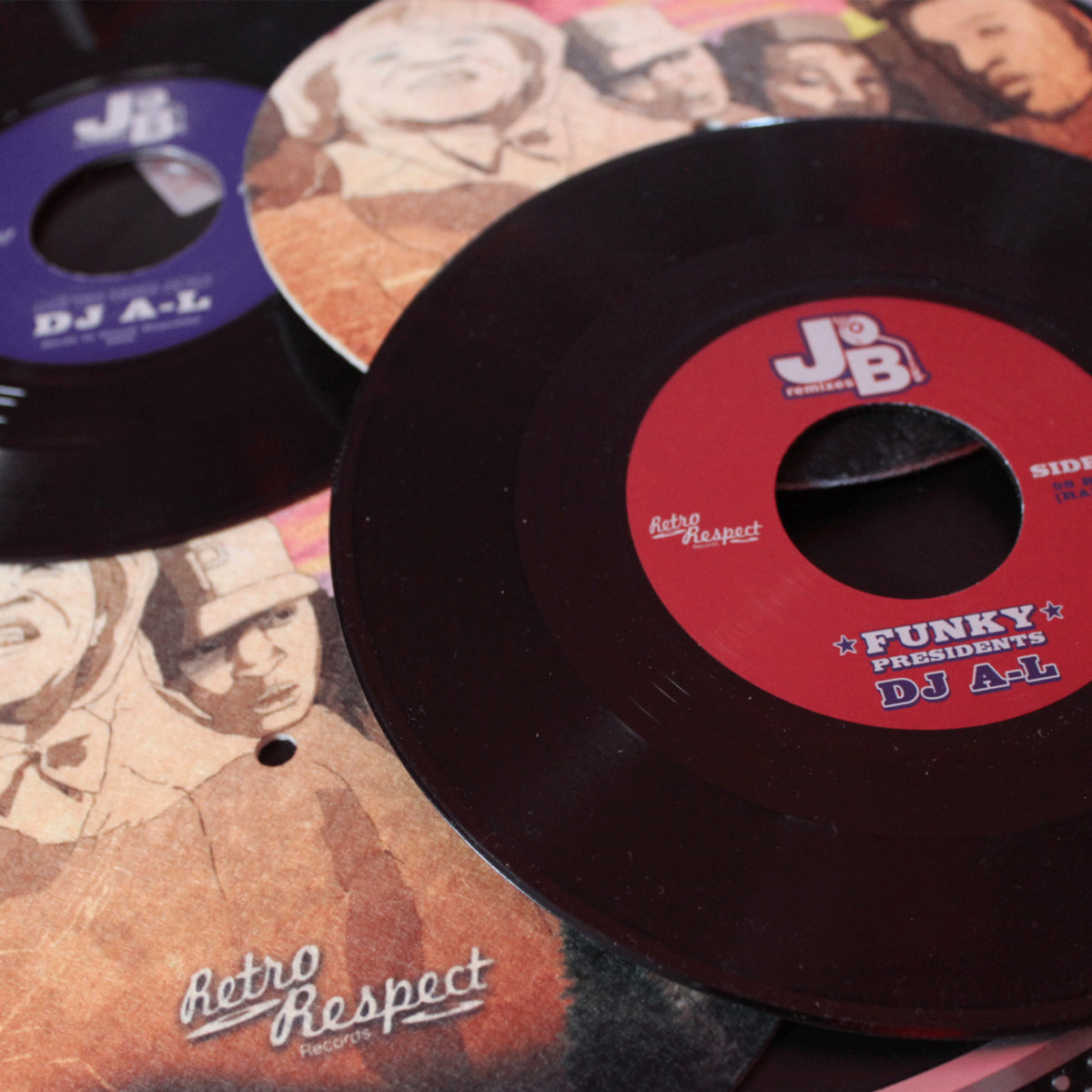 One pair of 7" "Funky Presidents" slipmats to accompany 45 collection. These slipmats are 100% felt, very soft and will not only protect your records but can be used when DJ'ing. Purchase includes free download of DJ A-L's "Funky Presidents" project